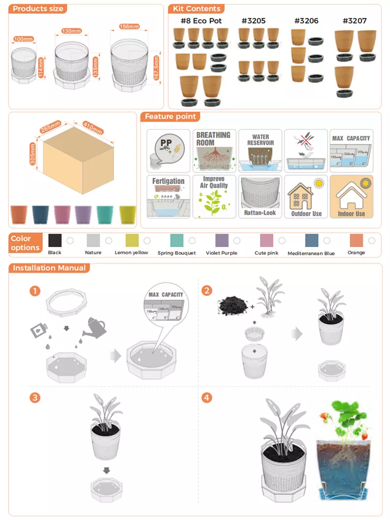 Watex é um fabricante profissional de vasos de flores de plástico para jardinagem ecológica na China. Este produto é adequado para decoração de ambiente doméstico. Com ele você pode plantar suas plantas favoritas. Temos 30 anos de experiência em exportações de comércio exterior. Estamos ansiosos para nos tornarmos seu parceiro de longo prazo na China.