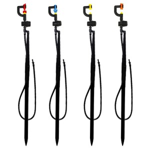Os robustos pregos de conexão equipados são projetados para uso prático, uma vez inseridos no solo, podem fixar firmemente o bico e evitar que ele se desloque devido ao impacto do vento ou do fluxo de água. Entretanto, o elevado ângulo de pulverização permite que o fluxo de água passe sobre a camada superficial da vegetação e cubra uniformemente a área das raízes, reduzindo a evaporação da água e melhorando significativamente a eficiência da irrigação, eliminando a necessidade de repetidos ajustes de posição e regas suplementares.