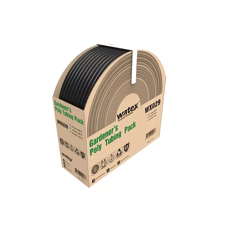 A série de tubos de abastecimento de água PE/PVC é durável e flexível, disponível em diâmetros internos de 4 mm, 13 mm, 19 mm e 25 mm. É fácil de desenrolar e ficar plano sem emaranhar, tornando-o ideal para planejar rotas de tubulação a partir da fonte de água e selecionar o tamanho de tubo apropriado com base nas taxas de fluxo necessárias. Compatível com acessórios Watex e braçadeiras para tubos, permite conexões rápidas e sem ferramentas para uma instalação descomplicada. A extremidade pode ser conectada a tubos capilares de irrigação de 4 mm, tornando-a adequada para sistemas de irrigação padrão de baixa pressão.