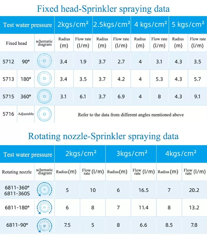 Quatro opções de cabeça de pulverização fixa: 90°、180°、360°