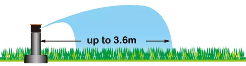 Aspersores de ângulo ajustável e fixo com alcance máximo de pulverização de 3,6 metros.