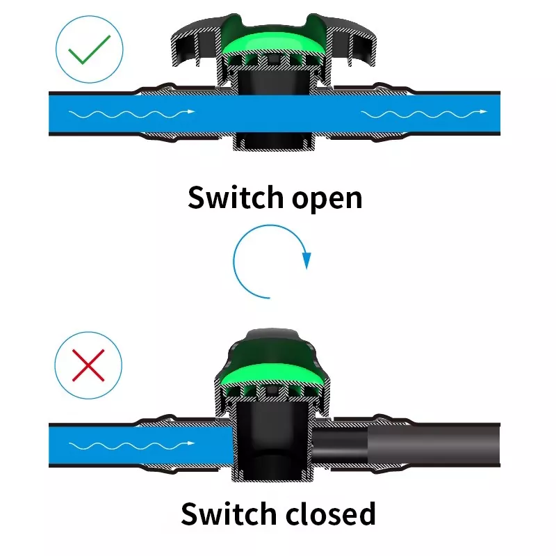 1 、 A válvula em linha liga-desliga é feita de plástico de alta qualidade e alta resistência (POM + PP modificado) com um design antienvelhecimento, garantindo durabilidade confiável e desempenho duradouro.